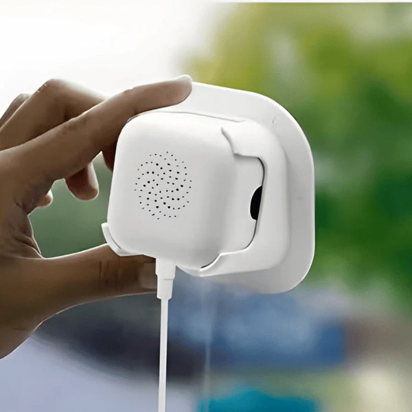 Lensy uses a strong, reusable adhesive pad — similar to what's used in automotive dashcams. It holds firm on any clean glass surface. If you need to move it, peel it off gently and it comes right off without leaving residue. The adhesive is reusable — just clean it with water and it sticks again.